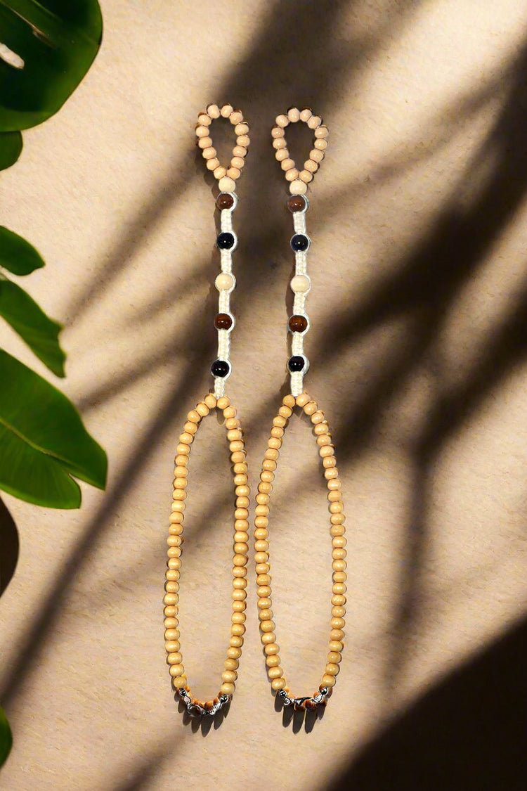 Welcome the dawn and early morning dew in a trio of earthy tones. Wooden beads and macrame offer a natural and earthy vibe to compliment your most stylish bohemian attire.